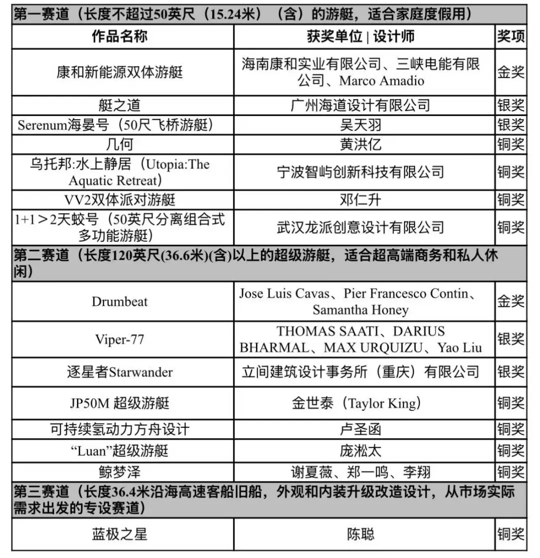 游艇设计分赛道暨第二届海南国际游艇设计大赛作品获奖名单